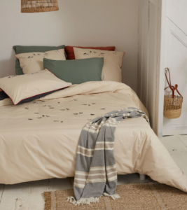 Cette parure est en percale de coton, 80 fils/cm²